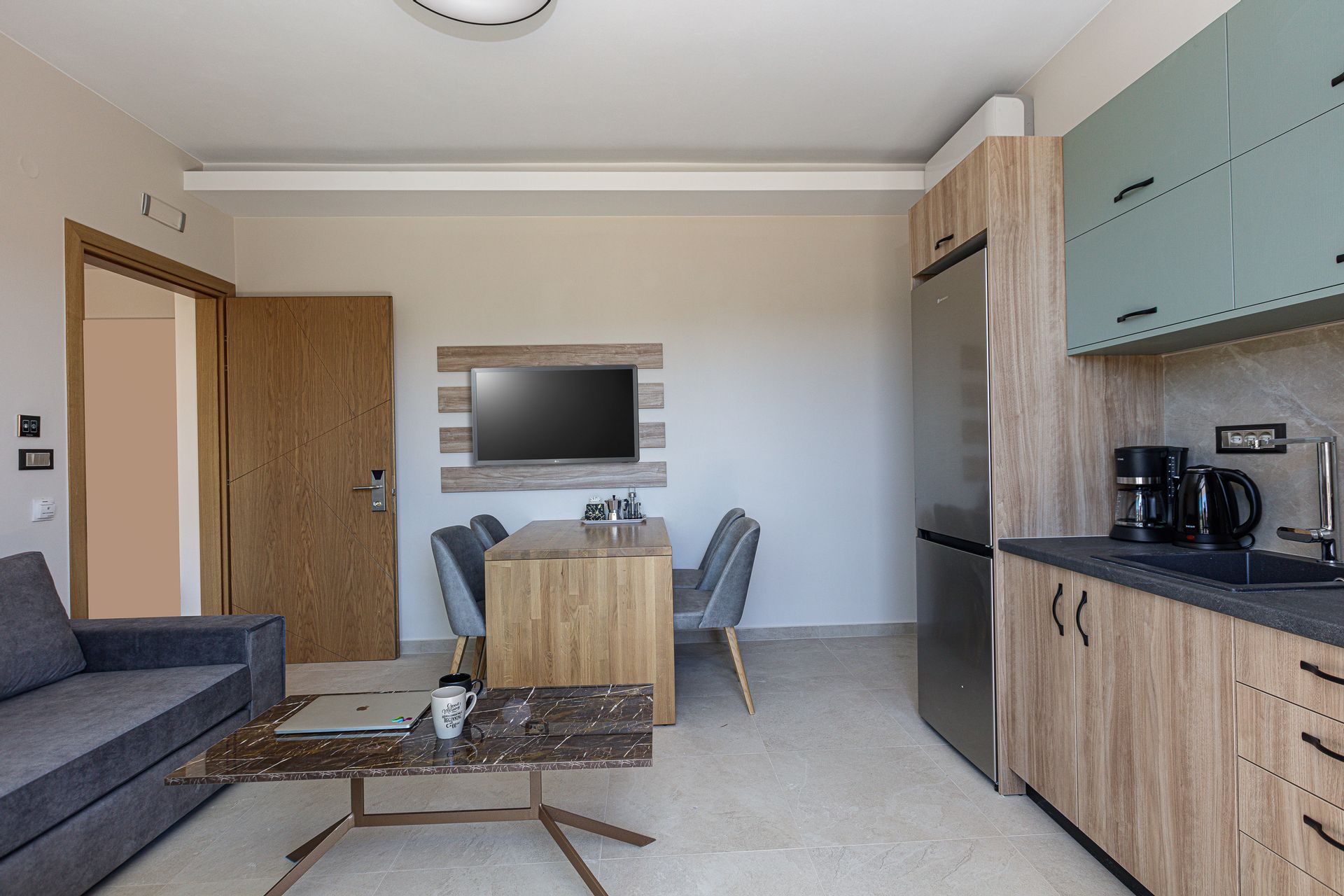 This Suite has 1 double bed and 1 single sofa bed which can accommodate up to 3 people. It is decorated with comfortable, modern furniture and that permit an affordable and at the same time pleasant stay.