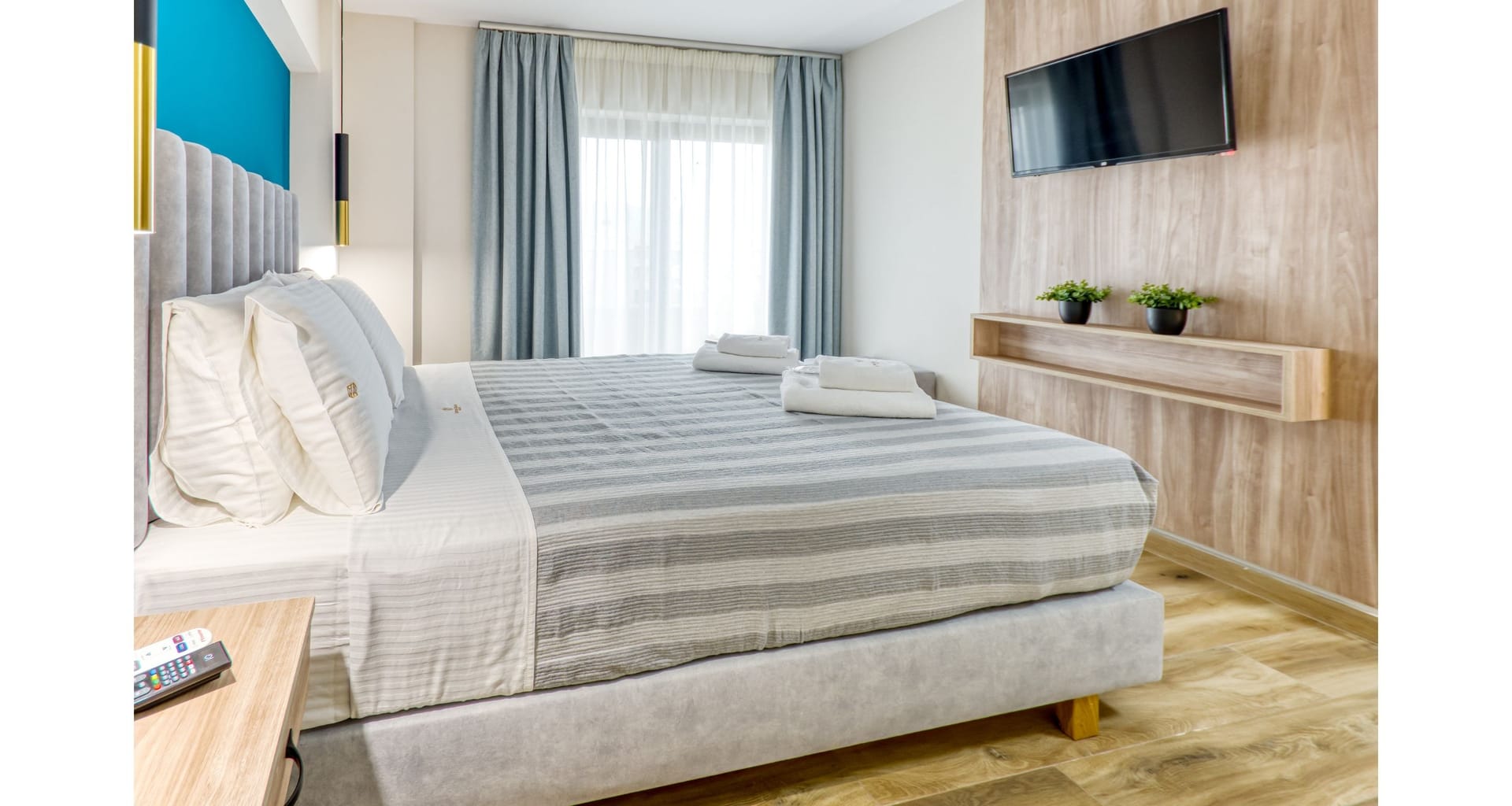 This Suite has 1 double bed or 2 single beds and 1 double sofa bed which can accommodate up to 3 people. It is decorated with comfortable, modern furniture and that permit an affordable and at the same time pleasant stay.